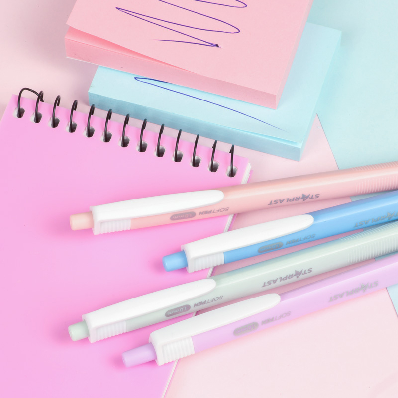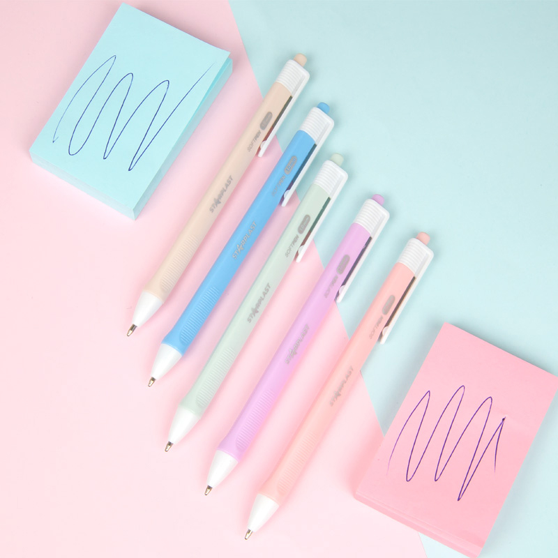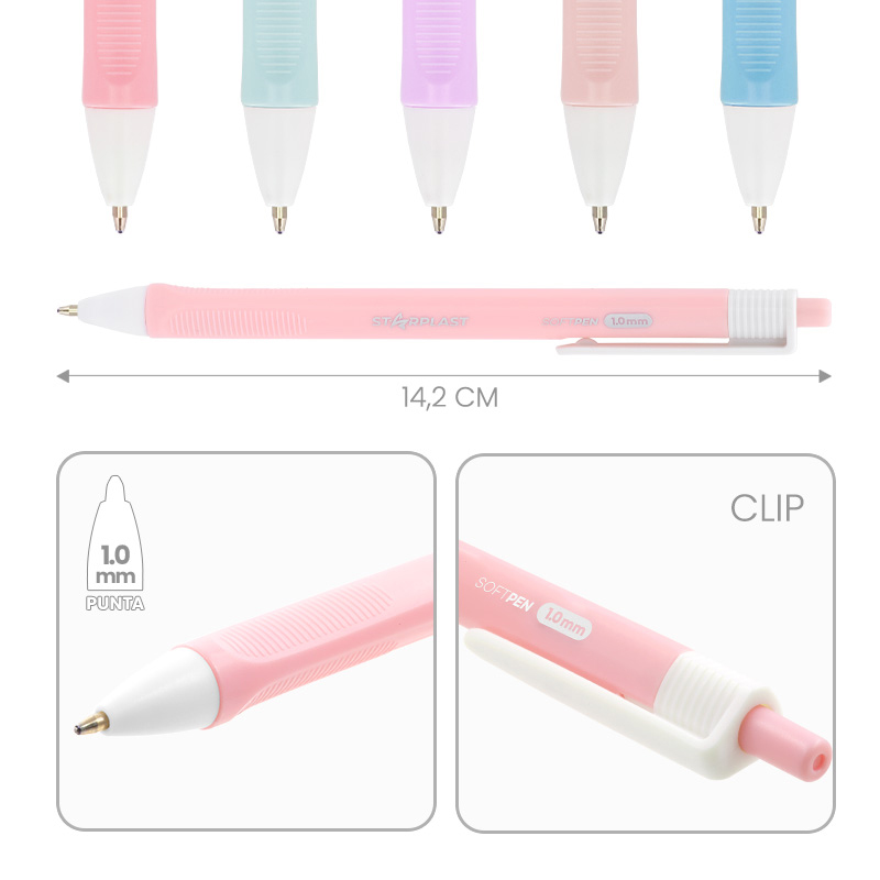 5 Bolígrafos softpen cuerpo pastel tinta azul punta 1mm
